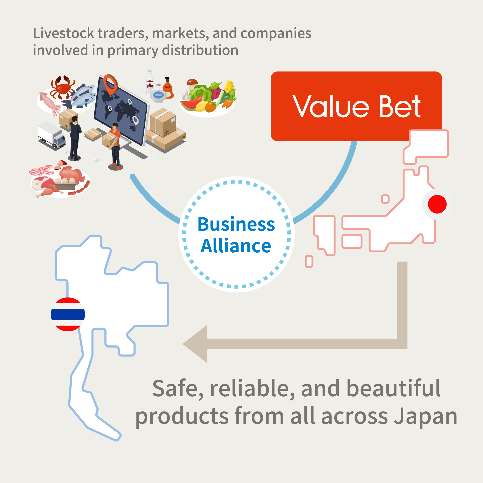 The mission of Value Bet Co., Ltd. is to pass on the dreams and dedication of the producers of Japan's carefully selected ingredients to the passionate chefs of Thai restaurants, helping to deliver joy, health, and happiness to the people of Thailand.
